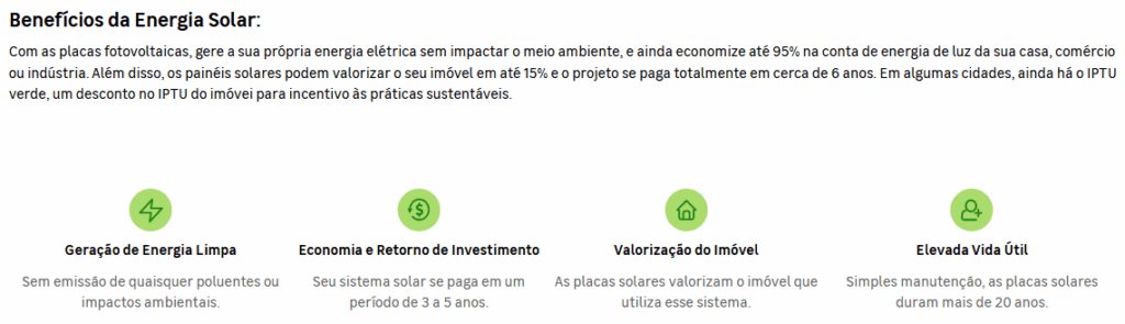 Mesmo com a redução de preço nos últimos anos, instalar um sistema de energia solar ainda exige um gasto relevante no começo, e o retorno desse investimento vem ao longo do tempo, na economia de energia.
