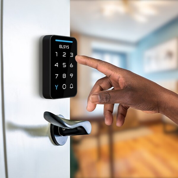 A fechadura digital Elsys Dance tem um acabamento discreto e moderno, que combina com diversos tipos de porta. Ela conta com função campainha, trava dupla e registra até 200 senhas.