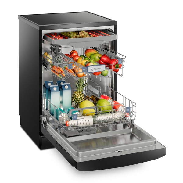 Tem capacidade para 14 serviços e oferece opções de lavagem flexíveis para diferentes volumes de louça. Seu acabamento preto fosco confere elegância e destaque ao ambiente!