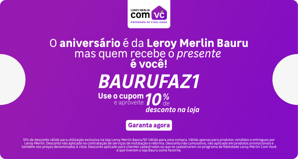 Passe na Leroy Merlin Bauru, aproveite as ofertas, participe da festa e celebre com a gente esse primeiro ano de muitas conquistas.