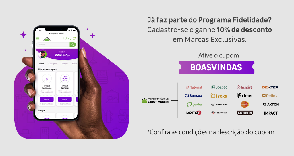 E o melhor, fazendo parte do Programa de Fidelidade da Leroy Merlin, você garante 10% de desconto na compra das nossas marcas exclusivas!