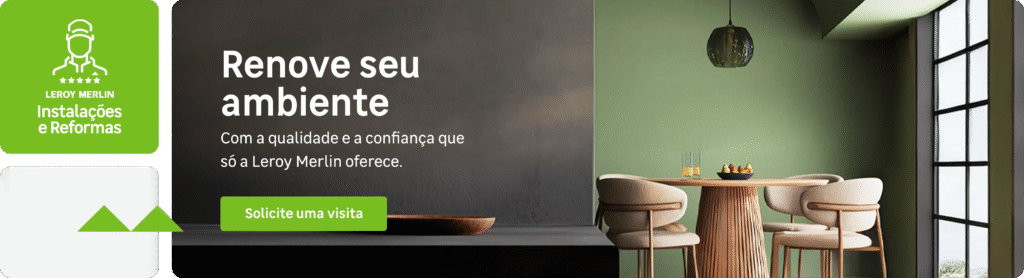 E na Leroy Merlin , você conta com um serviço de pintura especial, parte dos nossos serviços de Instalações e Reformas! Você agenda uma visita técnica, recebe a visita do nosso especialista e fica com um relatório detalhado dos materiais e serviços necessários.