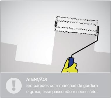 Para paredes com manchas de gordura ou graxa, lave a superfície com uma mistura de água e detergente neutro. Para paredes com mofo, aplique uma solução de água sanitária (ou cloro) e água. Deixe agir por 1h. Enxágue e aguarde a secagem.