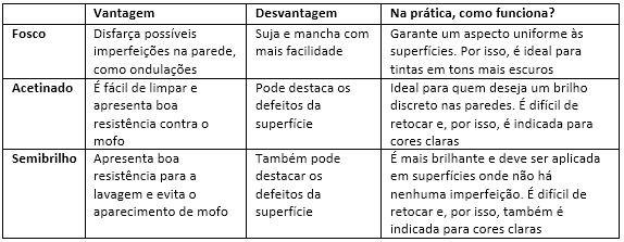 Diferentemente das tintas látex, as acrílicas têm variados acabamentos: fosco, semibrilho e acetinado. Conheça as vantagens e desvantagens de cada um deles: