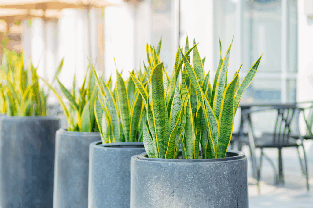 A zamioculca gosta de luz indireta e fica bem bonita em vasos de piso, por exemplo. A espada-de-São-Jorge é uma planta bem resistente e exige pouca manutenção. Ela também resiste bem em ambientes onde o ar-condicionado funciona por longos períodos.