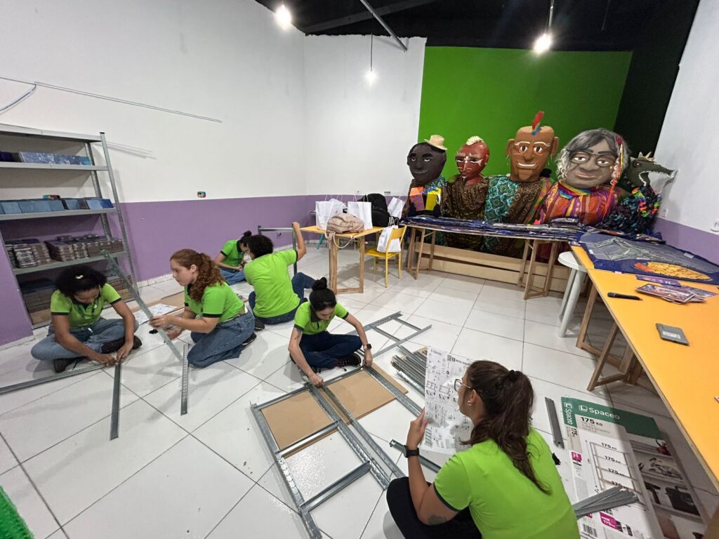 “O que a gente foi fazer lá foi na parte do ateliê deles. Nós participamos da organização de um espaço de bricolagem, onde recebemos doações de materiais e montamos três estantes e uma parede para ferramentas, garantindo que os voluntários pudessem potencializar o uso dos recursos disponíveis. Além disso, tivemos a oportunidade de conversar com várias pessoas que participam do programa, conhecer a comunidade, ouvir histórias e entender como nosso apoio pode se conectar melhor com eles. Essa experiência nos tirou um pouco da nossa bolha e foi muito gratificante”