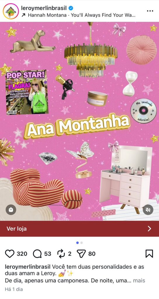 Diante desse cenário de forte engajamento, diversas marcas passaram a interagir com o tema nas redes sociais, utilizando referências da série para se conectar com o público de forma leve e bem-humorada. Entre elas, a LEROY MERLIN Brasil entrou na trend e mostrou que também está por dentro do universo pop. No Instagram e TikTok, a marca publicou um carrossel com sugestões de produtos para compor um